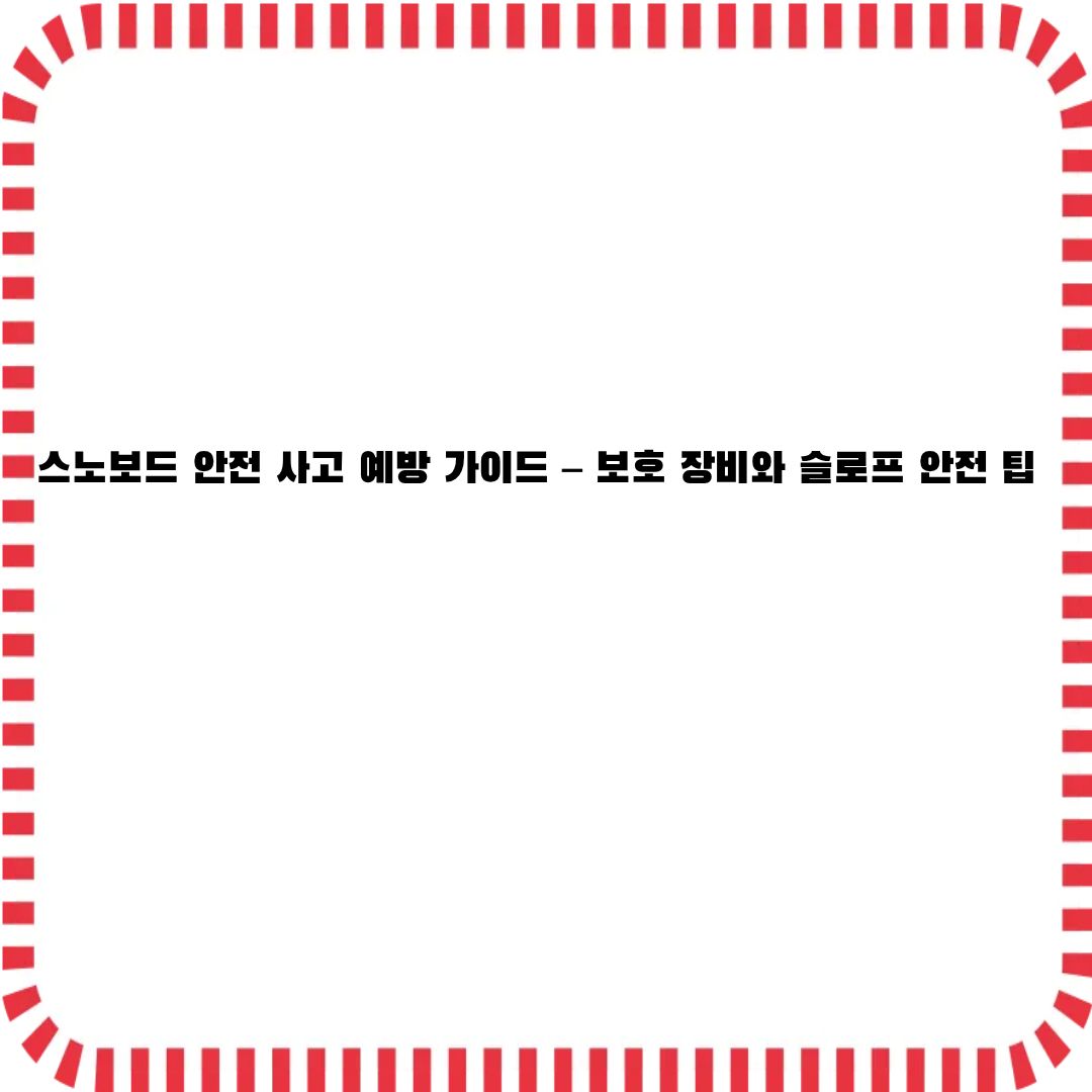 스노보드는 재미있고 스릴 넘치는 스포츠지만, 그만큼 안전도 매우 중요합니다. 적절한 보호 장비를 착용하고, 슬로프에서의 안전 규칙을 준수하며, 기본적인 기술을 익히는 것이 사고 예방에 큰 도움이 됩니다. 또한, 장비 점검과 날씨 변화에 대한 대비를 철저히 해야 안전하게 즐길 수 있습니다. 스노보드의 매력을 안전하게 만끽하기 위해, 위의 안전 사고 예방 가이드를 참고해 보세요.
